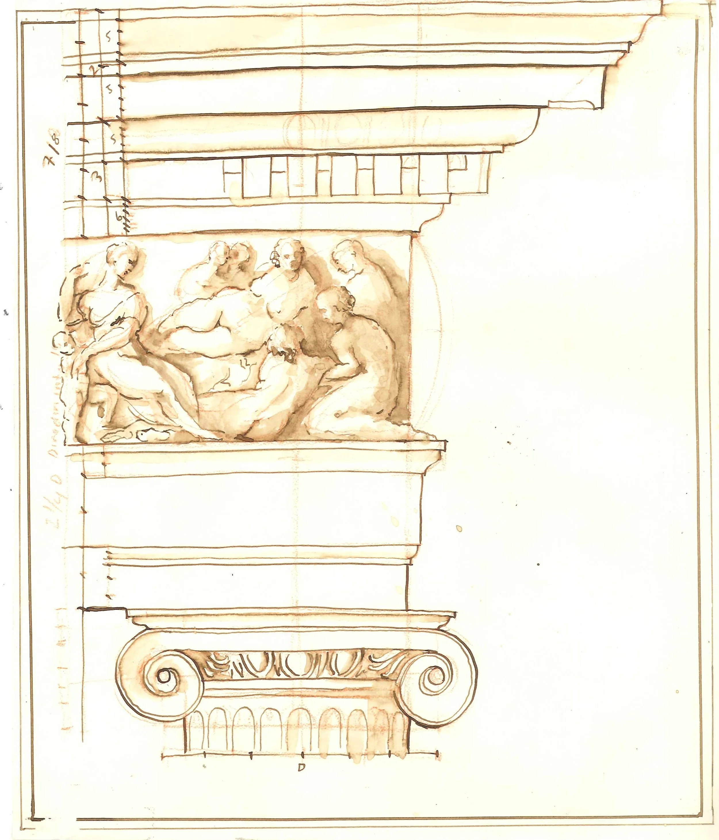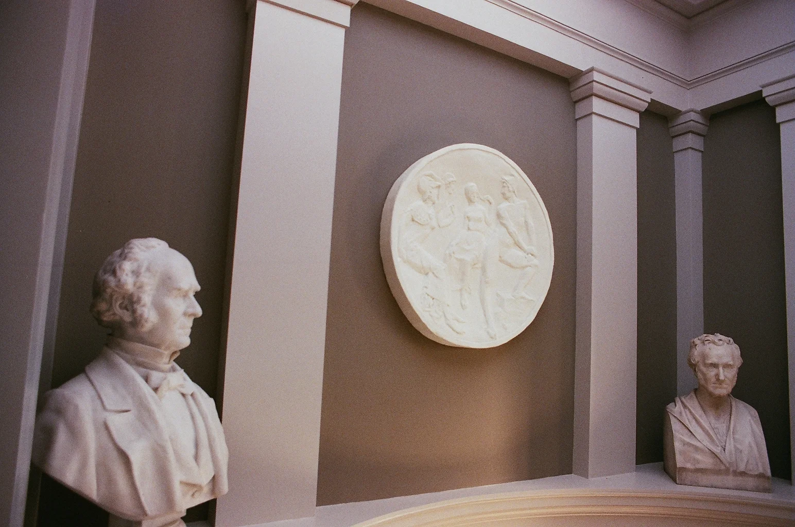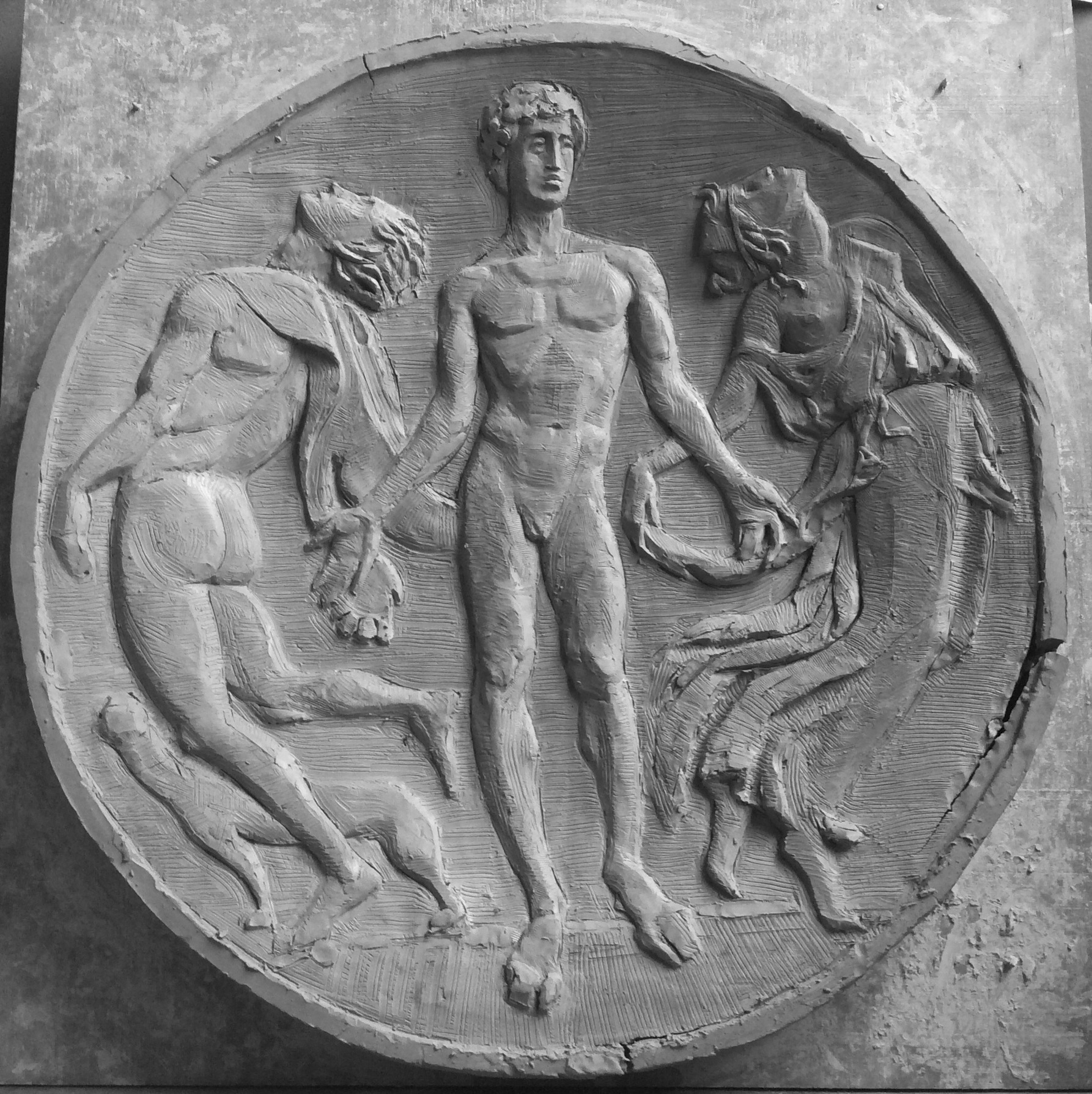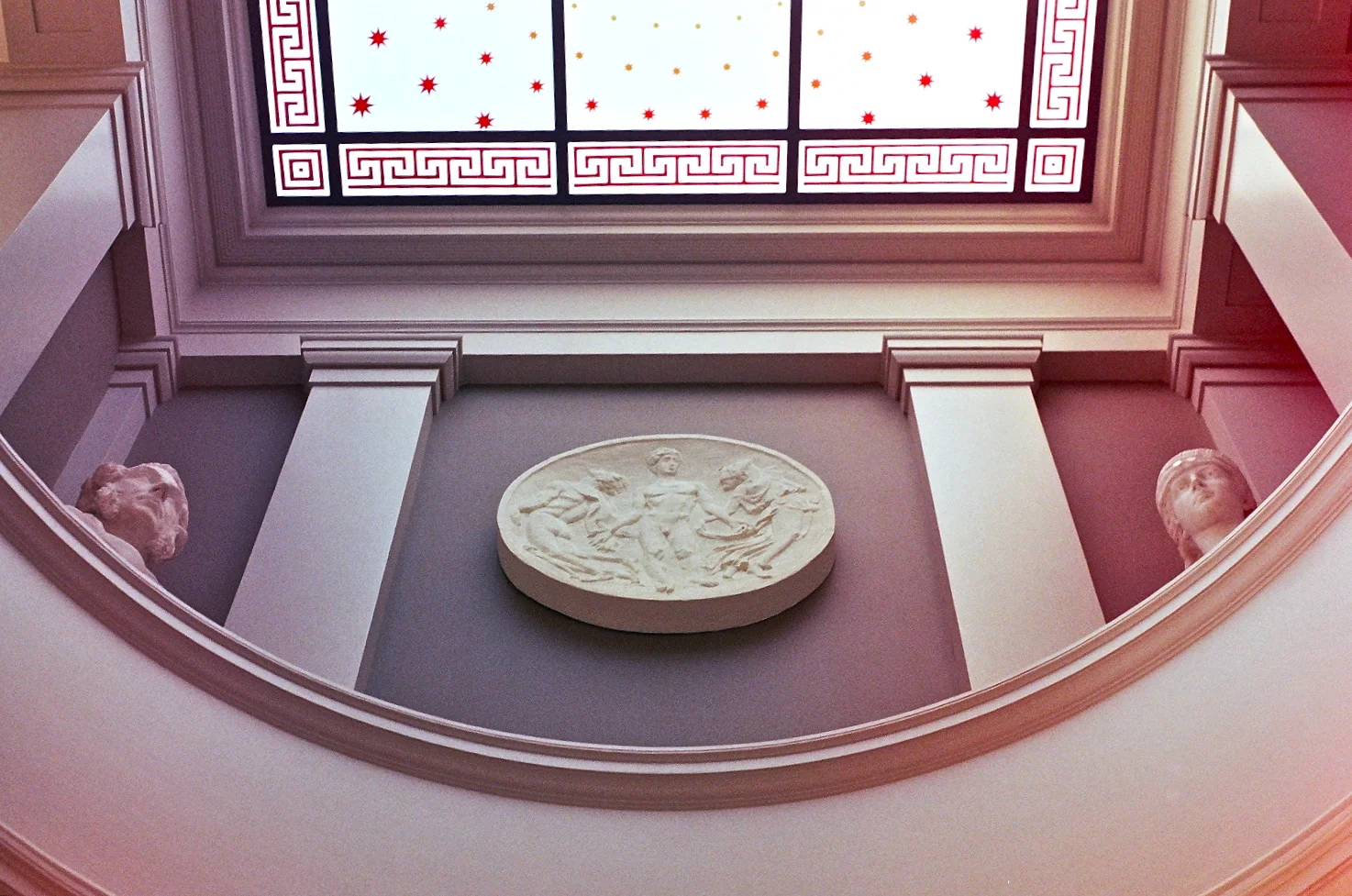 Two tondos on opposing walls of the tribune depict Greek mythical scenes. One of the pieces is a bold symmetrical portrayal of Dionysus surrounded by Meanads. Dionysus compliments the other tondo — an intimate, asymmetrical scene depicting the Judgment of Paris.