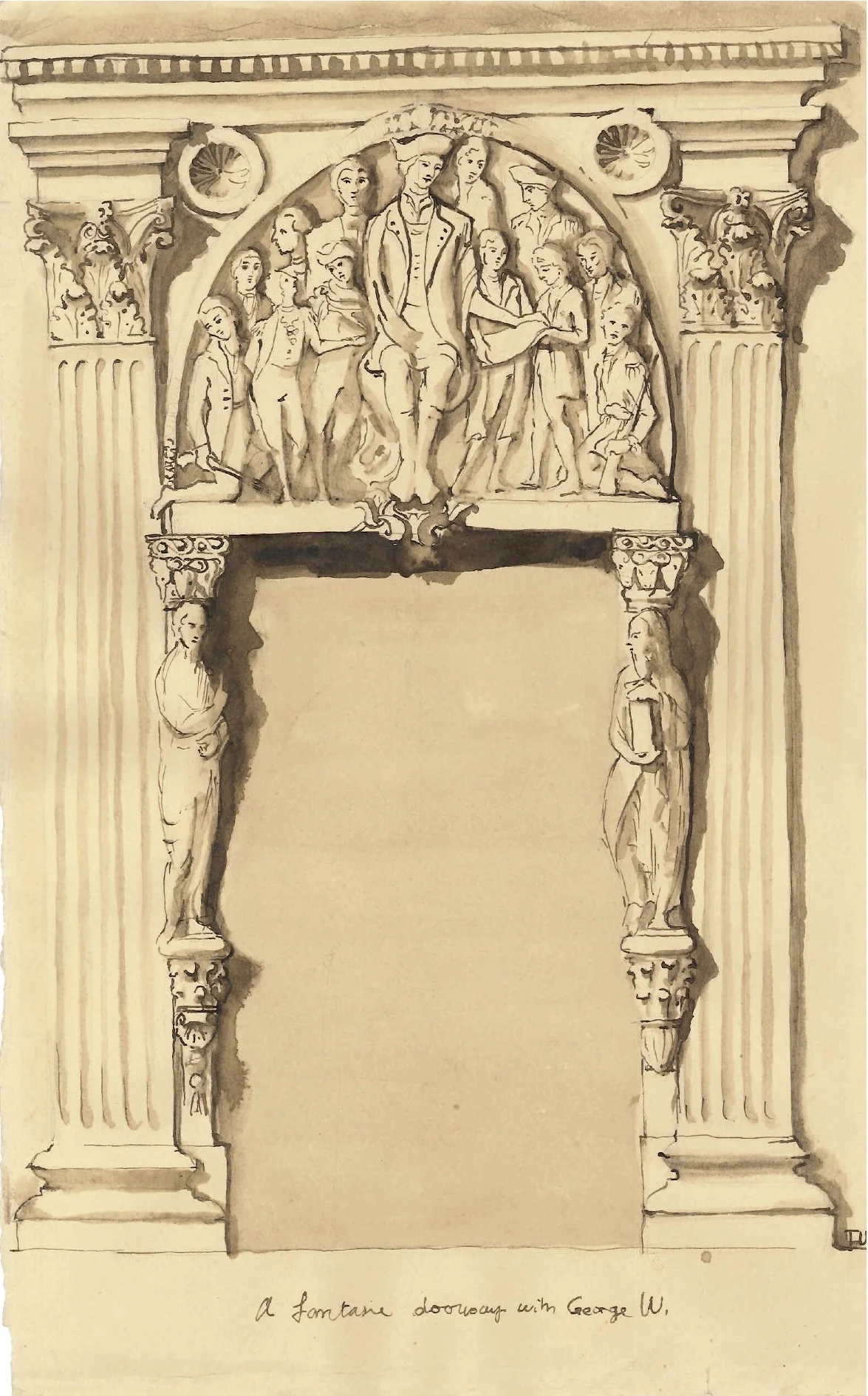 Tulis designed and sculpted a series of bas-reliefs for the exterior of Millbrook.